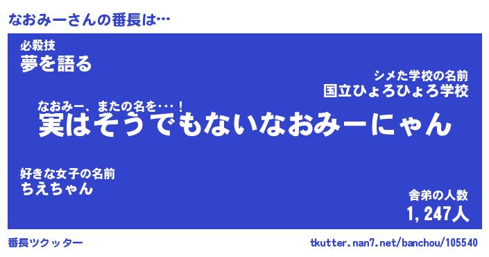 | 肩書あだ名 | 『なおみー店長』『なおみー大統領』 |