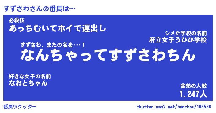 | ファンタジー風あだ名 | 『スズフェル』『エターナルスズサワー』 |