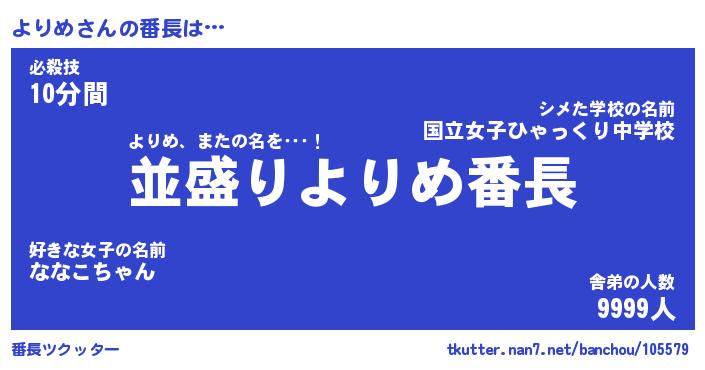 | ヒーロー風カッコイイあだ名 | 『スーパーヨリメ』『ウルトラよりめマン』 |