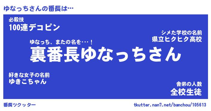 | ヘコむあだ名 | 『ゆなにー』『つくし』『ゆなを』 |