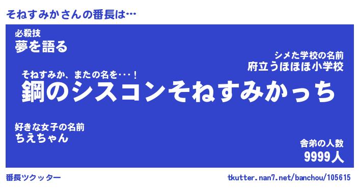 | 肩書あだ名 | 『そねすみか御曹司』『そねすみか大統領』 |