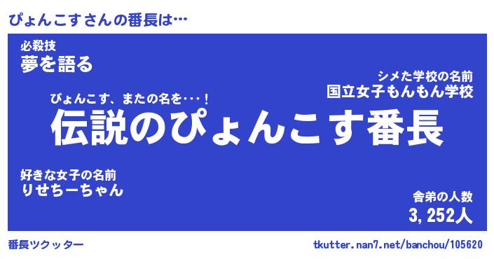 | ポケモン風あだ名 | 『ピョチュウ』『ピョンダネ』 |