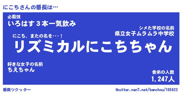 | 意味不明あだ名 | 『ペロリンにこち』『にこちフォーエバー』 |