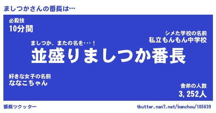 | ヒーロー風カッコイイあだ名 | 『スーパーマシツカ』『幻影騎士マシ』 |