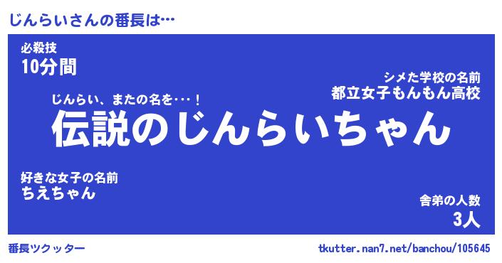 | 伝説のあだ名 | 『伝説のスナイパーじんらい』 |