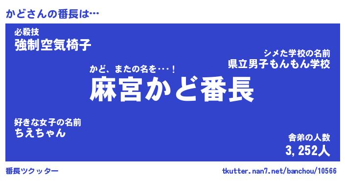 | 意味不明あだ名 | 『ペロリンかど』『かどフォーエバー』 |