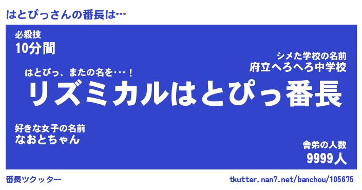 | 意味不明あだ名 | 『ペロリンはとぴっ』『永久保存はとぴっ』 |