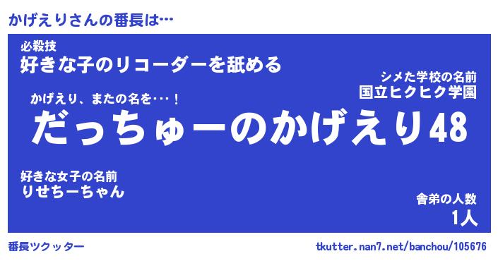 | 肩書あだ名 | 『かげえり社長』『かげえり国家主席』 |