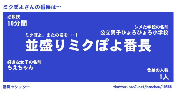 | ピコ太郎風あだ名 | 『ミコ八郎』『ピミ史郎』『ミク四郎』 |