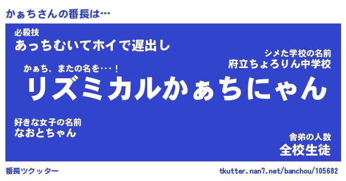 | 意味不明あだ名 | 『ペロリンかぁち』『かぁちフォーエバー』 |