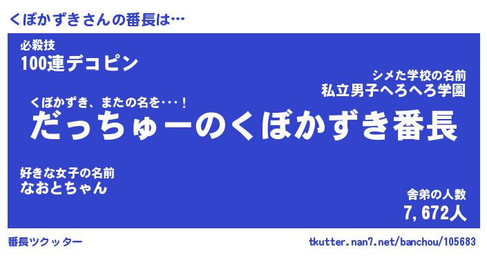 | 男性向けラノベタイトル風あだ名 | 『くぼかずきの憂鬱』 |