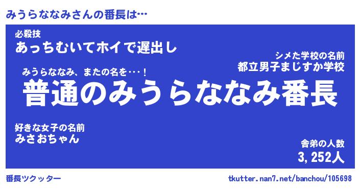 | 肩書あだ名 | 『みうらななみCEO』『みうらななみ塾長』 |