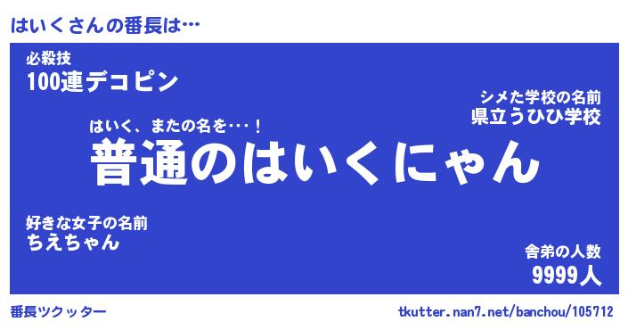 | ヘコむあだ名 | 『はいにゅー』『つくし』『はいお』 |