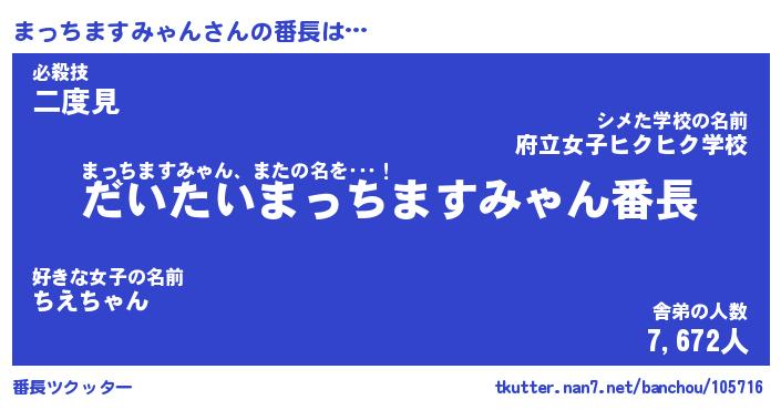 | 男性向けラノベタイトル風あだ名 | 『まっちますみゃんの憂鬱』 |