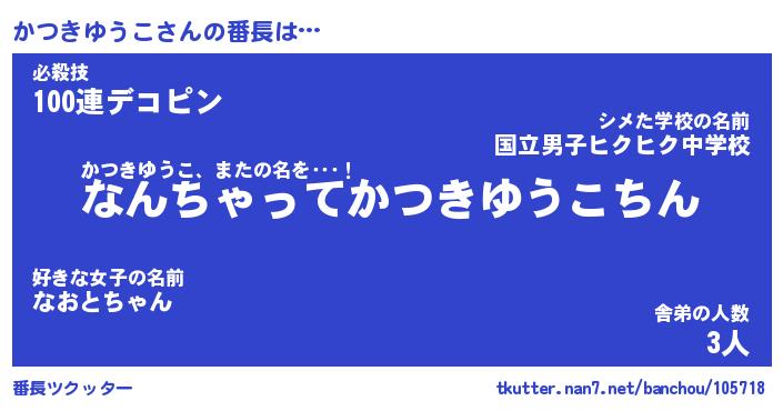 | 男性向けラノベタイトル風あだ名 | 『かつきゆうこの憂鬱』 |