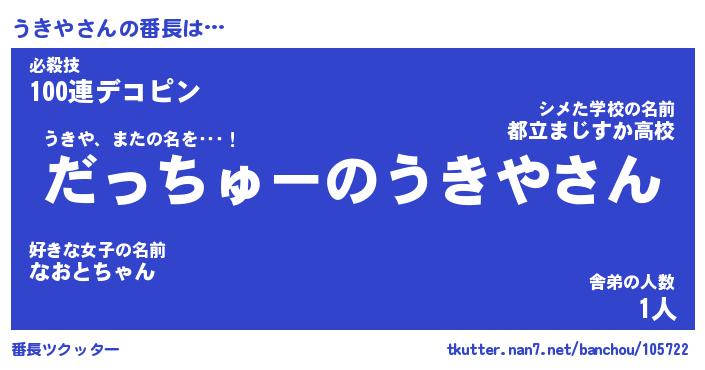 | 伝説のあだ名 | 『伝説のスナイパーうきや』 |