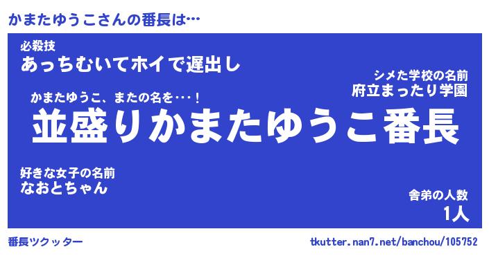 | ヒーロー風カッコイイあだ名 | 『スーパーカマタユウコ』『天弓騎士カマ』 |