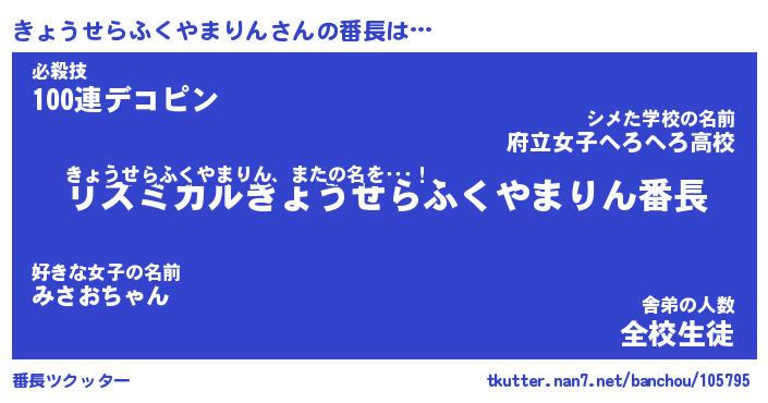 | 肩書あだ名 | 『きょうせらふくやまりんCEO』 |