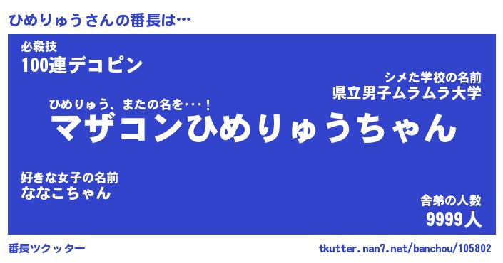 | ヒーロー風カッコイイあだ名 | 『スーパーヒメリュウ』『天弓騎士ヒメ』 |