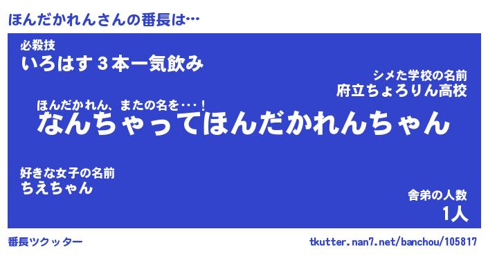 | ポケモン風あだ名 | 『ホンチュウ』『ホンダダネ』 |