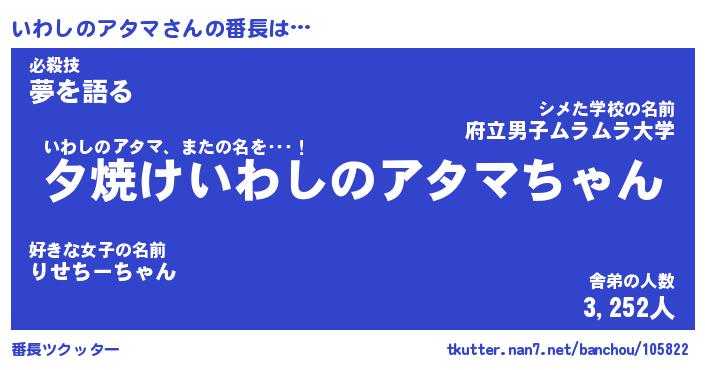 | 男性向けラノベタイトル風あだ名 | 『イワシノアタマアートオンライン』 |