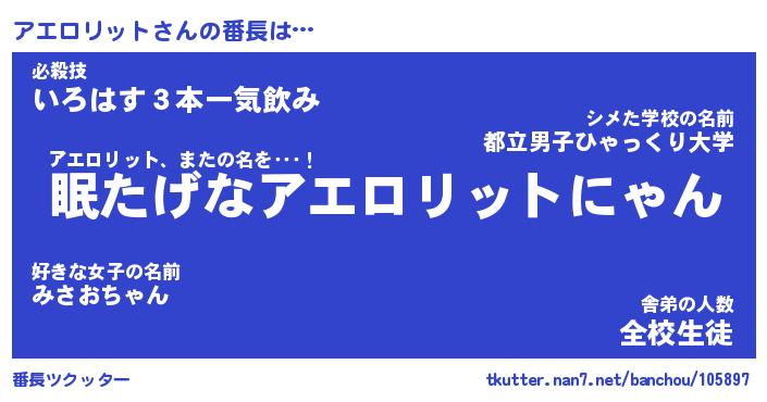 | ヒーロー風カッコイイあだ名 | 『スーパーアエロリット』『暗黒騎士アエ』 |