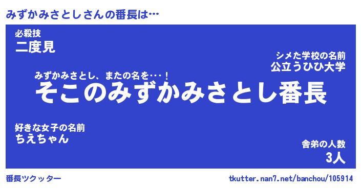| ヒーロー風カッコイイあだ名 | 『スーパーミズカミサトシ』 |