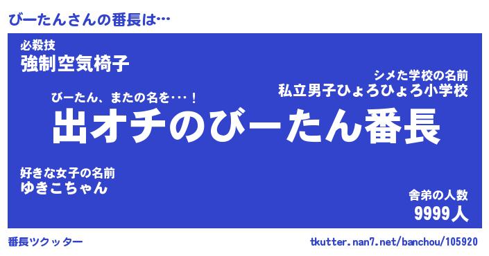 | 肩書あだ名 | 『びーたん店長』『びーたん国家主席』 |