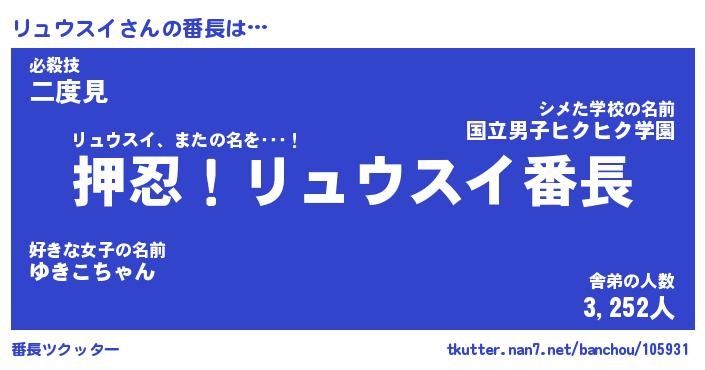 | 肩書あだ名 | 『リュウスイ店長』『リュウスイ総理大臣』 |