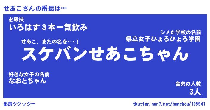 | ヘコむあだ名 | 『せあにー』『なまこ酢』 |