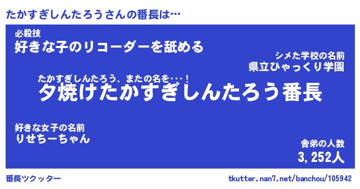 | 肩書あだ名 | 『たかすぎしんたろう社長』 |