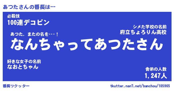 | ポケモン風あだ名 | 『アツチュウ』『アツタダネ』 |