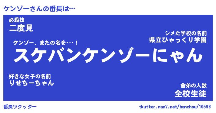 | ポケモン風あだ名 | 『ケンチュウ』『ケンゾダネ』 |