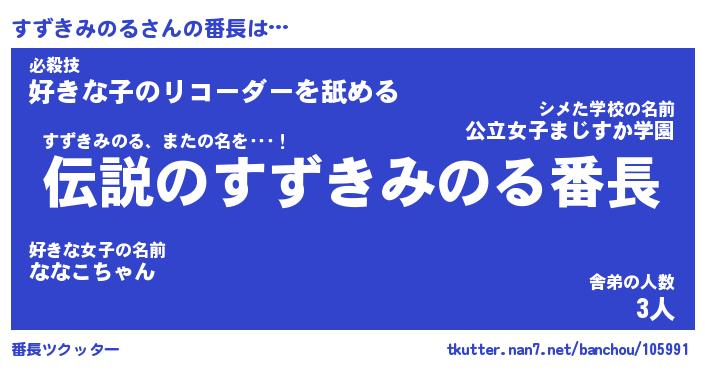 | ヒーロー風カッコイイあだ名 | 『スーパースズキミノル』『魔戒騎士スズ』 |