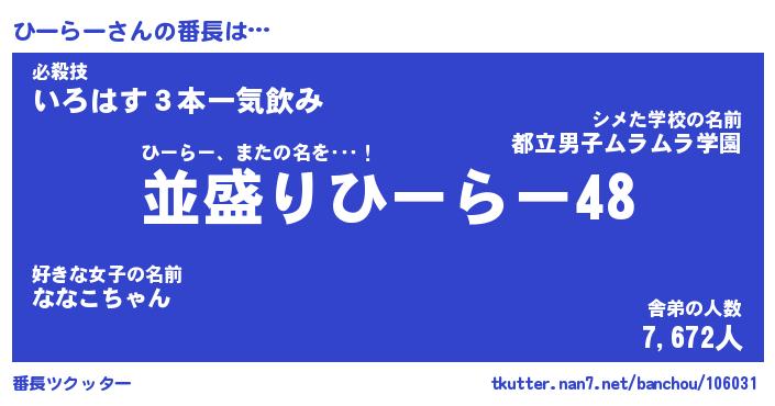| 意味不明あだ名 | 『ペロリンひーらー』『永久保存ひーらー』 |