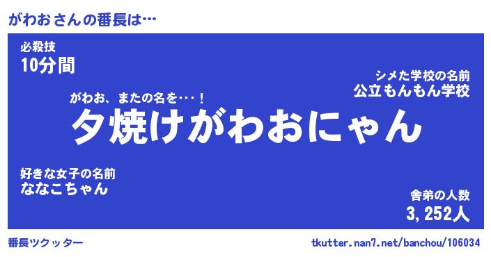 | 意味不明あだ名 | 『ペロリンがわお』『がわおフォーエバー』 |