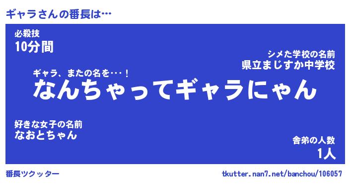 | ヘコむあだ名 | 『ギャにー』『牛乳』『ギャを』 |