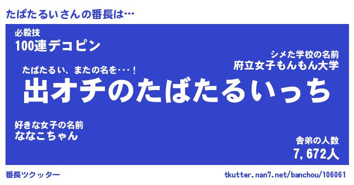| 伝説のあだ名 | 『伝説のスナイパーたばたるい』 |
