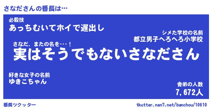 | 伝説のあだ名 | 『封印されしスナイパーさなだ』 |