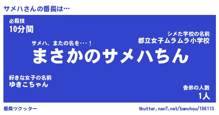 | ヒーロー風カッコイイあだ名 | 『スーパーサメハ』『ウルトラサメハマン』 |