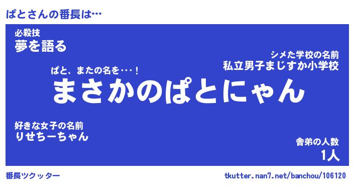 | 肩書あだ名 | 『ぱと社長』『ぱと総理大臣』 |