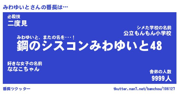 | 伝説のあだ名 | 『封印されしスナイパーみわゆいと』 |