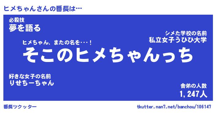 | ファンタジー風あだ名 | 『ヒメフェル』『エターナルヒメチャンー』 |