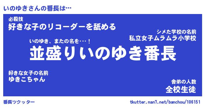 | 意味不明あだ名 | 『ペロリンいのゆき』『永久保存いのゆき』 |