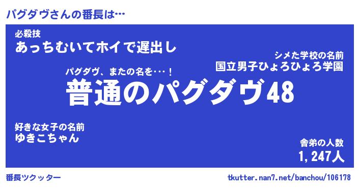 | ピコ太郎風あだ名 | 『パコ太郎』『ピパ六郎』『パグ史郎』 |