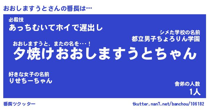 | 男性向けラノベタイトル風あだ名 | 『オオシマスウトアートオンライン』 |
