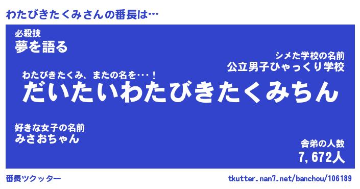 | 男性向けラノベタイトル風あだ名 | 『わたびきたくみの憂鬱』 |
