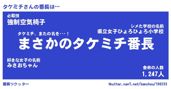 | ポケモン風あだ名 | 『タケチュウ』『タケミダネ』 |