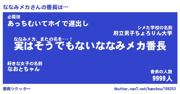 | 自動車の名前っぽいあだ名 | 『ナナティマ』『ナスラー』『ナント』 |