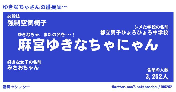 | 男性向けラノベタイトル風あだ名 | 『ユキナチャアートオンライン』 |